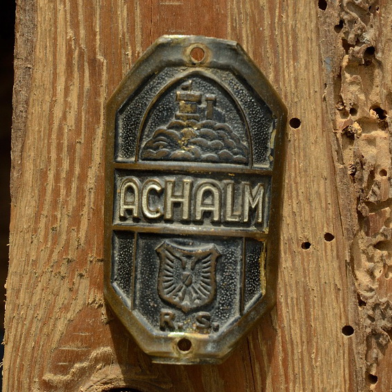 Steuerkopfschild ACHALM, 30-50er Jahre, Originalschild aus Sammlungsbestand, Lochabstand 55mm