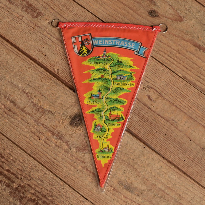 TOBI-Wimpel "WEINSTRASSE", 60/70er Jahre Altbestand, ca. 26cm lang, für Fahrräder, Mopeds,