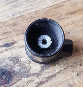 Zündkerzenstecker BREMI, schwarz, alte, große Ausführung , nicht entstört, geschraubter Einsatz, orig. Vorkriegsware (NOS aber lagerungsbedingt minimal bestoßen, siehe Bilder) ,