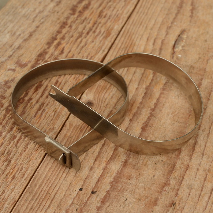 Hosenspange Fahrradschloss, vernickelt, orig. Vorkriegsware, lagerungsbedingt leicht patiniert (Nickelablösungen, leichter Flugrost), technisch gut.