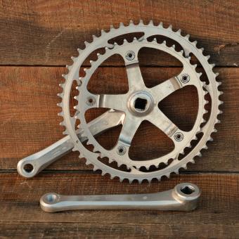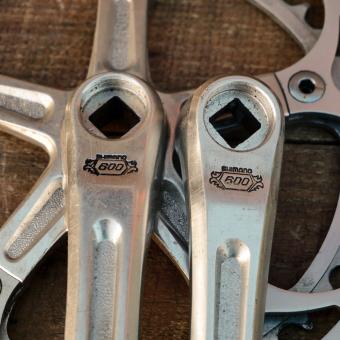 Kurbelgarnitur SHIMANO 600 Arabesque, für Schraublager mit Vierkant-Achse, original 80er J., Alu,