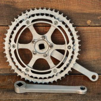 Standardkurbeln 170 mm, TA-Kettenräder 44/52 Zähne, gebraucht mit Patina, Zustand siehe Fotos