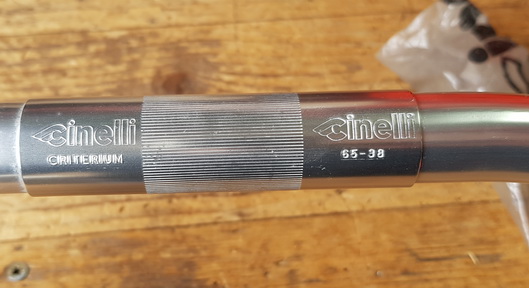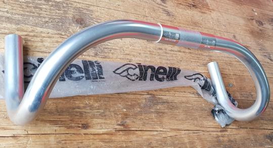 Rennlenker "CINELLI Criterium, Typ 65-38, idealer Bahnlenker, new Logo, Alu, Breite=40,5 cm (außen) , D=26.4 mm (Klemmung), rar NOS 70-80er Jahre, orig. alte Neuware !!