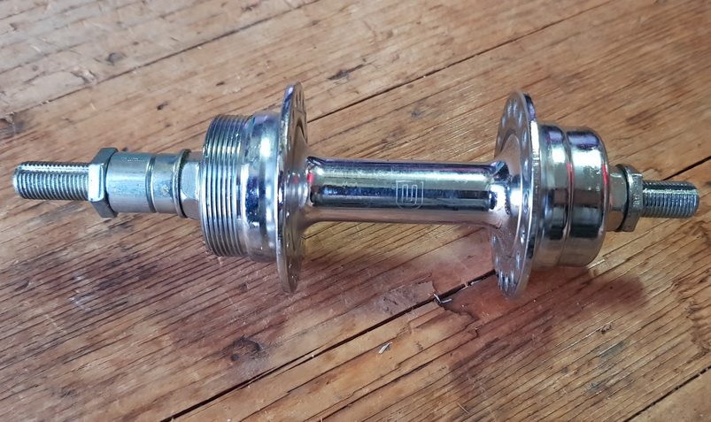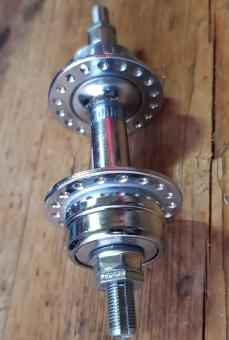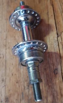 Nabe Hinterrad, UNION (made in germany), Stahl, verchromt, 36Loch, Einbaumaß 120 bis 130 mm, Achse FG9,5 mm, f. Standard-Schraubkranz BSA 1,375"x 24 tpi , NOS . Typische Renn-und Sportradnabe der 70-80er Jahre, NOS !