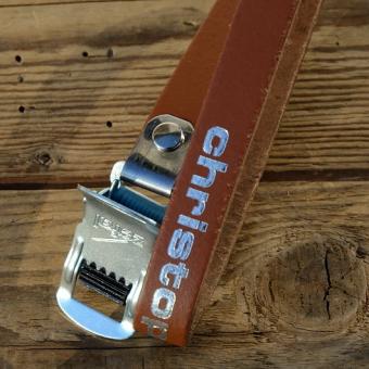 Pedalriemen "CHRISTOPHE", braun, bestes Leder, hochwertige Ausführung, Verschluß glanzverzinkt