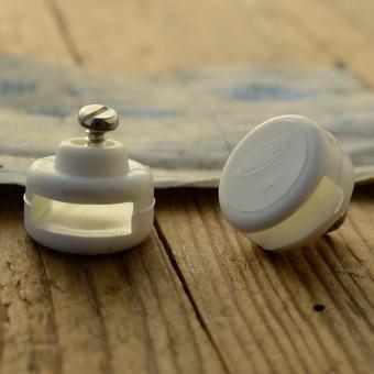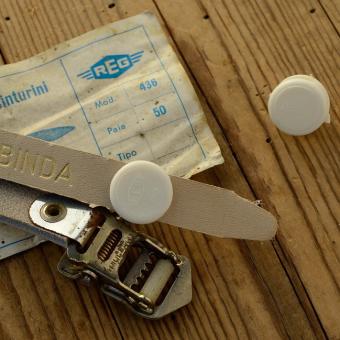 Stopper / Klemme / Knopf "REG", f. Pedalriemen , blau, Kunststoff, verhindert das Herausrutschen des Pedalriemen