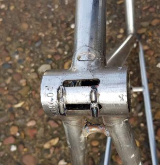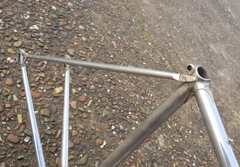 Zwei kleine Dellen seitlich im Oberrohr müßten gespachtelt werden, ansonsten alles top. Campagnolo Ausfallenden, Reynolds Rohrsatz 531.