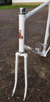 Der Rahmen stammt aus der der Auflösung der alten Raleigh Deutschland Vertretung und war nie komplett aufgebaut. Etwas Lagerstaub ist vorhanden aber weder Rost noch nenneswerte Kratzer etc.