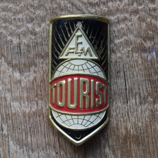 Steuerkopfschild Tourist Franz Epple Memmingen, 50er Jahre, Originalschild aus Sammlungsbestand, Lochabstand 54 mm Ideal für den passenden Fahrradoldtimer oder die Sammlervitrine. Zustand siehe Bild.