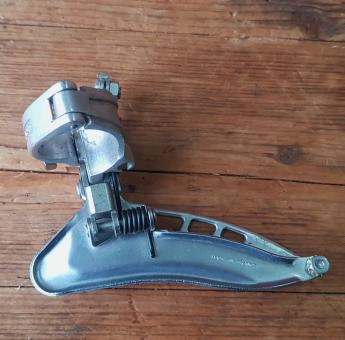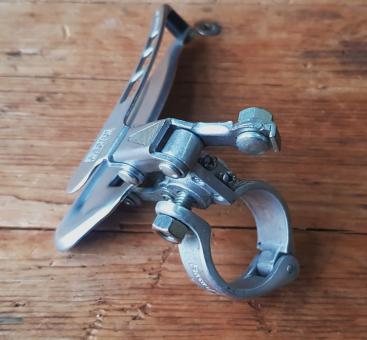 Umwerfer "SACHS", 2-fach, Alu/Stahl, mit Klappschelle für 29-30 mm Rohr, 70/80er Jahre, NOS