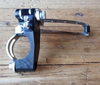 Umwerfer "SIMPLEX", 2-fach, Stahlausführung, mit Klappschelle ca. 29 mm, 60/70er Jahre, NOS, altbewährtes Modell für Rennradklassiker.