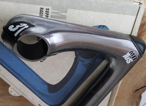Lenker Vorbau "3ttt MOTUS", Alu titangrau, L=110mm, Klemmung= 25,8 - 26,0 mm, NOS/NIB, Schaftmaß 22.2mm, orig. 90er Jahre, Luxus-Modell der italienischen Schmiede
