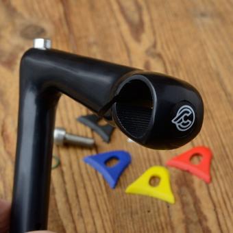 Zu jedem Vorbau gibt es einen schwarzen oder farbigen Einlegegummi dazu. Bitte 1-2 Farbwünsche angeben, die wir zu erfüllen versuchen.
