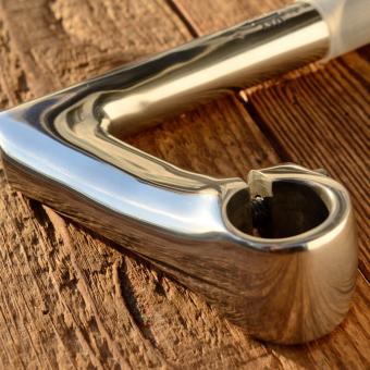Lenker Vorbau, ungemarkt, Alu poliert, L=100mm, Klemmung=25.4mm, Schaftlänge=150mm, passend u.a. zu unseren klassischen Aluminium Hörnchen - und Rennlenkern,